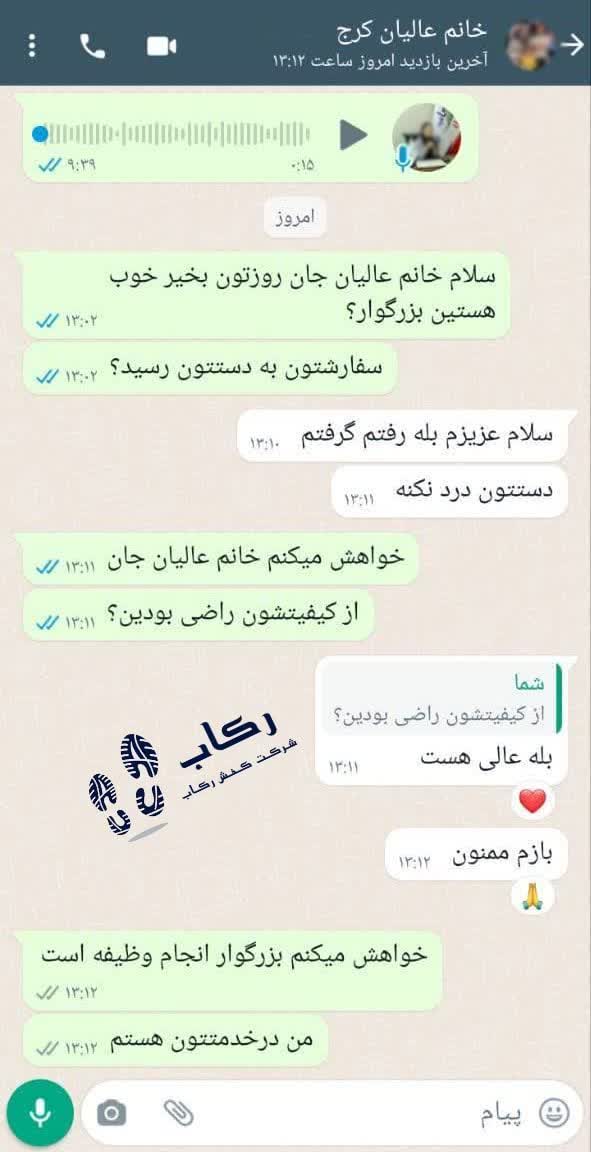 برای اثبات این ادعا اسکرین شات چت با یکی از مشتریان عزیز به نام خانم عالیان از کرج را در ادامه قرار داده ایم.